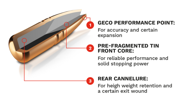 Das GECO ZERO ist ein bleifreies Geschoss mit hoher Wirksamkeit und Präzision - für alle Wildarten.