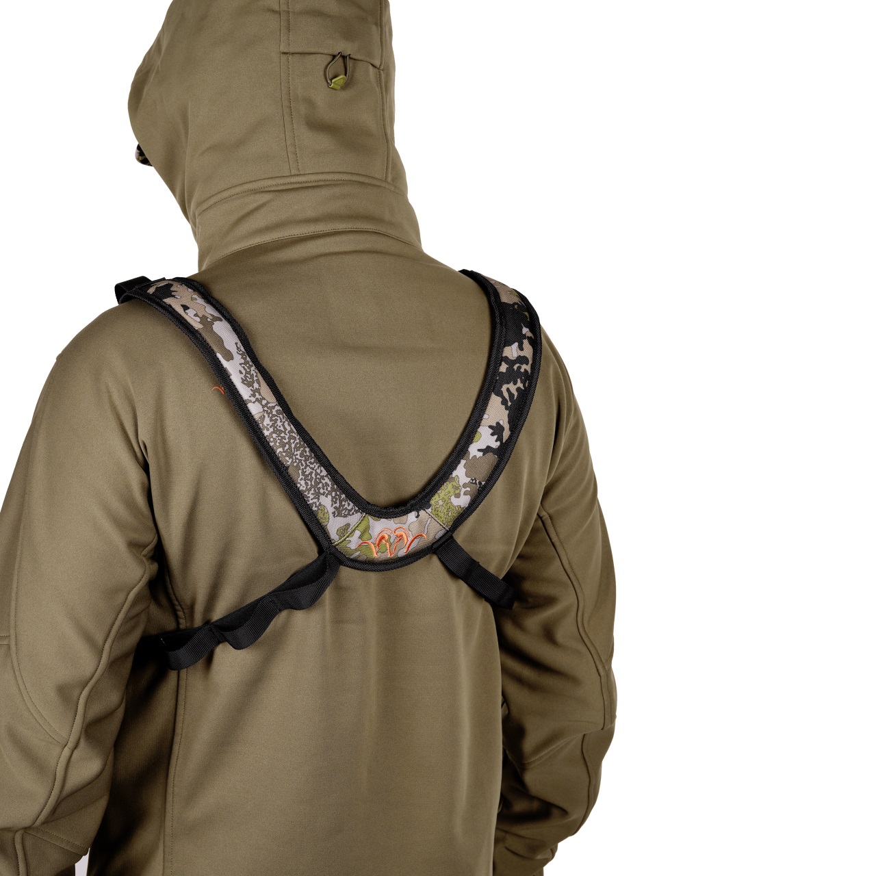 Die Blaser Brusttasche ist der perfekte Begleiter für jede jagdliche Situation von der Pirsch bis zum Ansitz. Die Tasche ist einfach anzuziehen und teilflexibel. Auch schwere Optiken sind somit einfach zu tragen. Innovative Verschlüsse machen es möglich die Tasche ohne Tragesystem auch an den Blaser Daypack anzubringen. Durch den flexiblen Trenner im inneren lässt sich die Größe der Fächer individuell anpassen. durch teilweise vernähte elastische Bänder am Trageriemen ist die Tasche bedingt flexibel was den Vorteil hat, dass auch schwere Optiken ohne großes Pendeln oder Hüpfen getragen werden können. Die Seitentaschen sind groß und hoch genug gestaltet, dass einfachst auf verstaute Ausrüstung wie Windprüfer, Entfernungsmesser oder Blaser Carbon Zweibein zugegriffen werden kann. Die Tasche kann komplett durch 2 Fidlock Verschlüsse und 2 Clipverschlüsse vom Schultergurt entfernt werden. Somit kann Sie z.B im Rucksack mitgeführt werden oder an den Schultergurt des Blaser Daypacks angebracht werden.