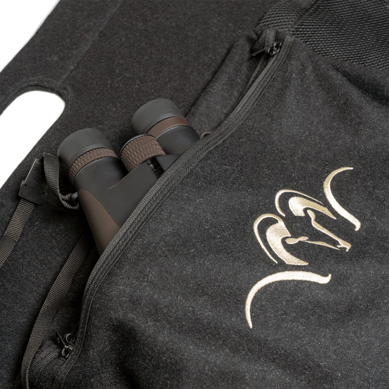 Das Blaser PKW-Futteral mit einem großen, absperrbaren Fach (117x38cm) und abschließbarer Fronttasche für Patronen, kann mit zwei Schlaufen an den Kopfstützen des Fahrer- und Beifahrersitzes befestigt werden. Auch bei holprigen Fahrten durchs Revier oder starkem Abbremsen ist alles immer sicher und zuverlässig verwahrt. Das Blaser PKW Futteral aus flexiblem Neoprenmaterial besticht durch einen edlen Loden-Look. Es ist von beiden Seiten zugänglich und einfach in der Handhabung. Zwei integrierte Schlaufen halten zudem den Blaser Zielstock in Position. Mit praktischer Trageschlaufe für einfachen Transport auch außerhalb des Autos.