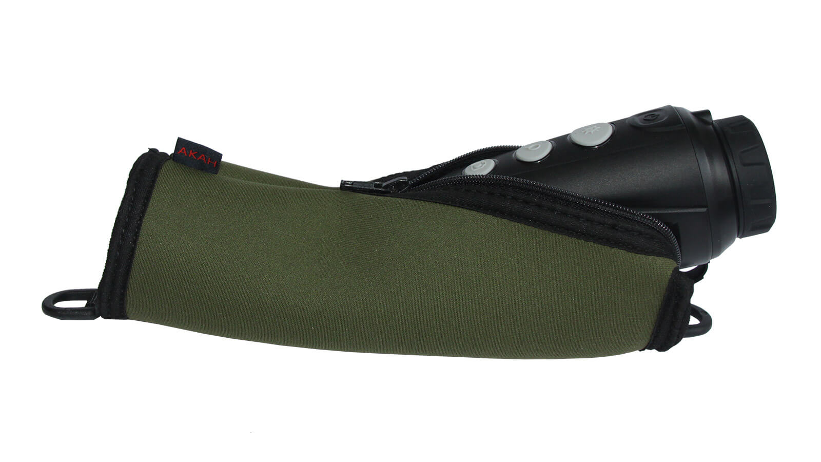 Grüne Neopren-Schutzhülle für Wärmebildkameras. Ideal für Wärmebildgeräte wie LAHOUX Spotter oder Liemke Keiler. Kann am Gürtel getragen werden (Gürteldurchlass 50 mm). Zwei stabile Ösen zur Anbringung eines Trageriemens (nicht enthalten / z.B. #50370.004 oder #50812.000 ). Passend für Wärmebildgeräte wie z.B. Zeiss DTI 3/35 oder Lahoux Spotter, Spotter M, Spotter Pro, Liemke Keiler. Aber auch viele andere Einhandgeräte finden in dieser Hülle sicheren Schutz.